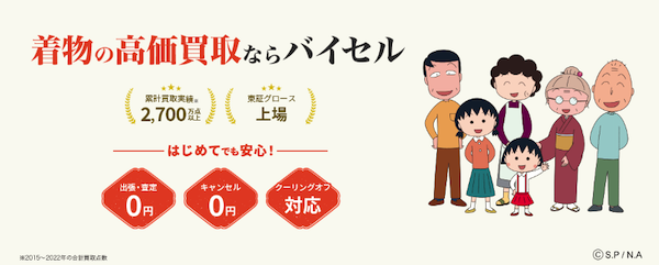 バイセルは、2019年に東証グロースに上場した着物買取業者であり、福ちゃんと同様に高額査定が期待できる買取業者です。