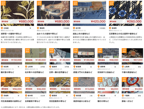 公式HPは堂々と「着物はフック商材ではなく、主要商材」と謳っており、着物の買取実績を豊富に出していることから、押し買いされる心配なく査定してもらえます。